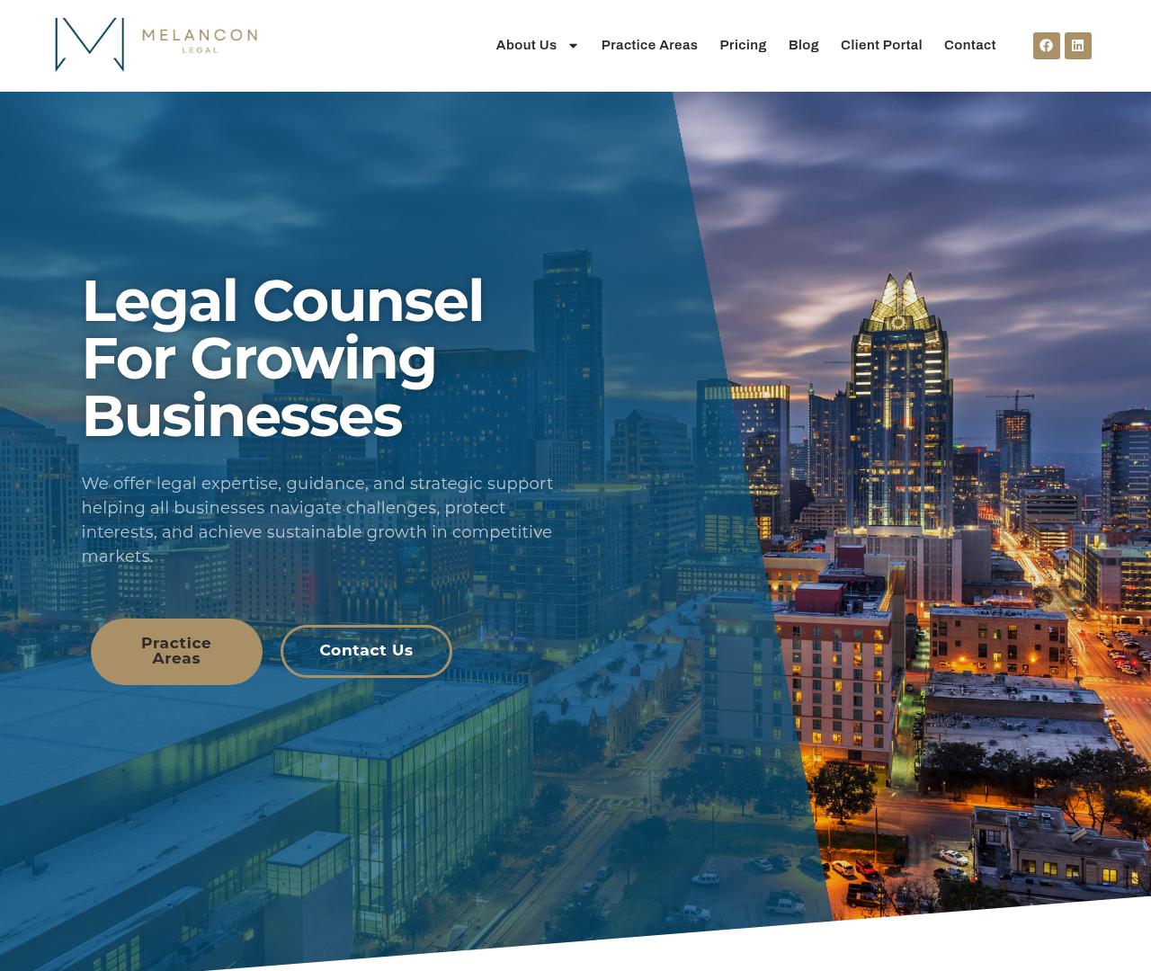 We built a professional and conversion-focused website for Melancon Legal, a Texas-based law firm specializing in legal services for small to medium-sized businesses. With a clean, intuitive layout and strategic UX design, the site clearly defines practice areas such as legal compliance, contract management, dispute resolution, and business structuring. The goal was to enhance the firm’s online presence with a modern, trust-building design that communicates authority while making service discovery and client engagement seamless.